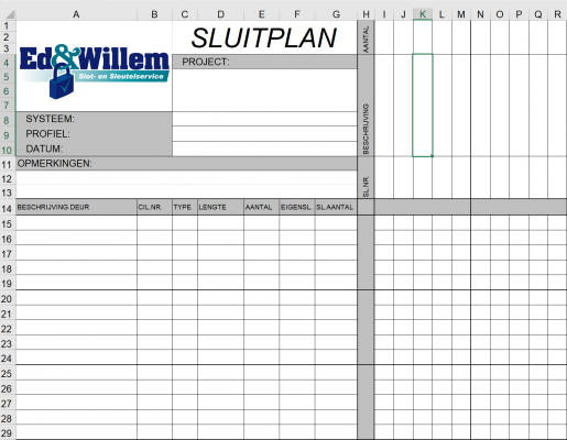 Indien u zelf al een sluitplan heeft gemaakt kunt u die invullen in dit excel bestand: Sluitplan_Klein Ed & Willem en vervolgens mailen naar info@ed-en-willem.nl voor een offerte